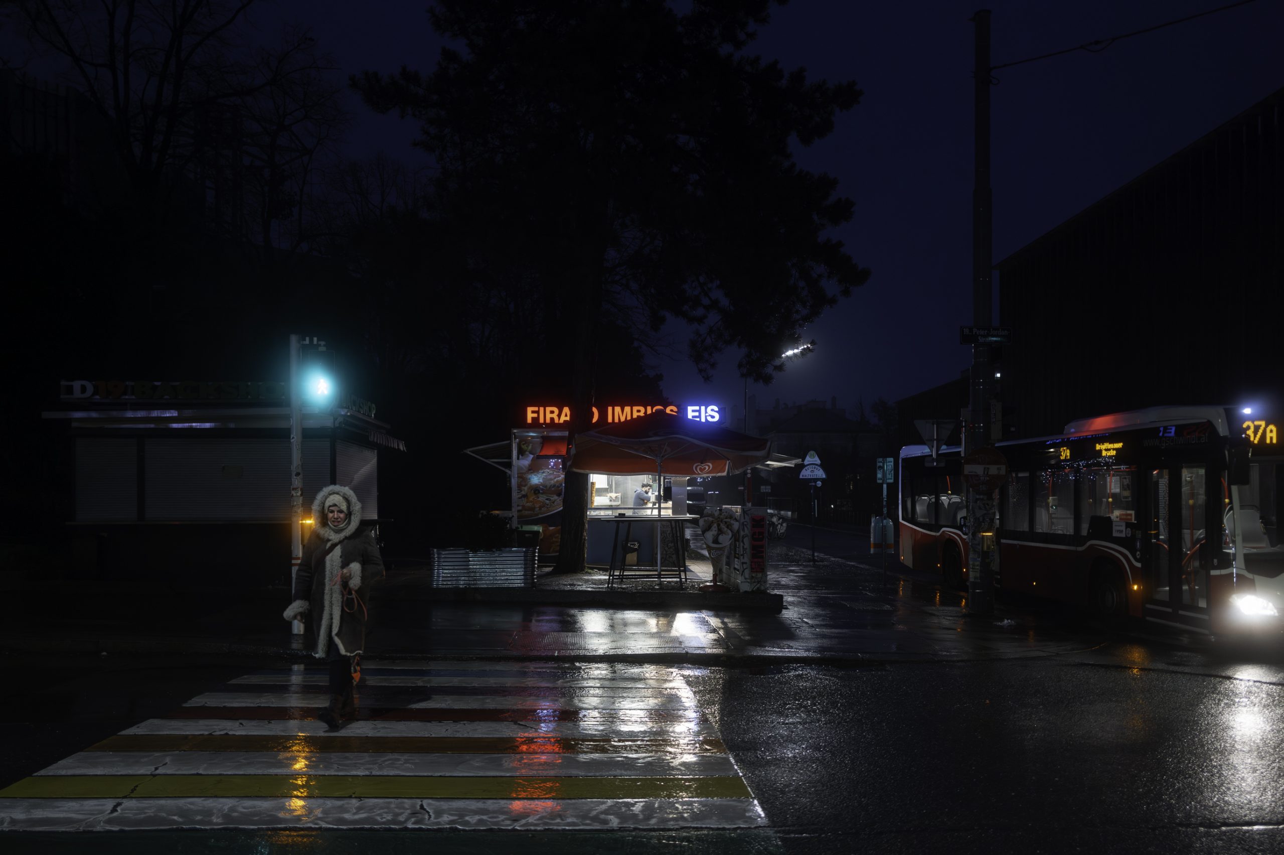 Licht auf nassem Asphalt. Ein Blick im Vorbeigehen.